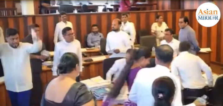 While the Mayor proceeded with council business in accordance with the agenda, the situation escalated when the committee stage of the meeting was announced. At that point, a group of opposition councillors allegedly threw water bottles at the area where the Secretary and officials were seated.