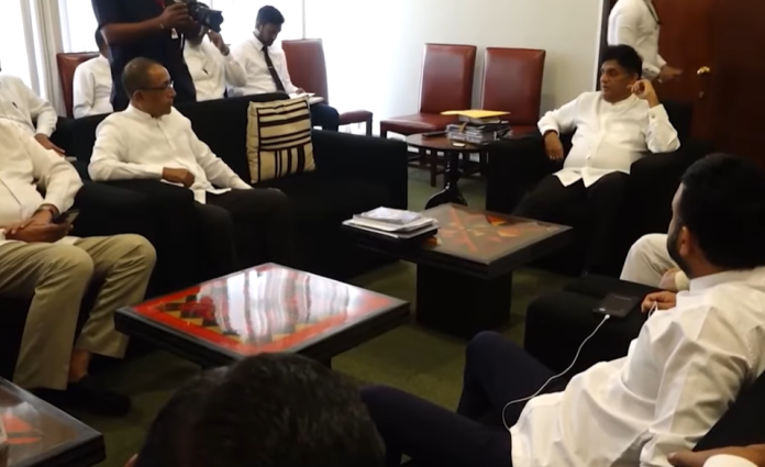 The meeting was convened by Opposition Leader Sajith Premadasa at the Parliament complex in Parliament of Sri Lanka.