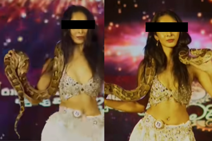 The incident had taken place during the “Rajakeeya Avurudu Kumara Kumariya” pageant organised by model Chandimal Jayasinghe at the Royal Marks Arena in Colombo. A video circulating on social media showed the woman, identified as Methmi Hiranya, dancing with a python wrapped around her neck, prompting wildlife officials to launch an investigation.