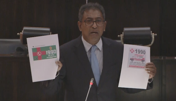 Samagi Jana Balawegaya (SJB) MP Dr Harsha de Silva launched a sharp criticism in Parliament today (9), condemning alleged government directives to alter the identity and branding of the popular ‘1990 Suwa Seriya’ ambulance service.